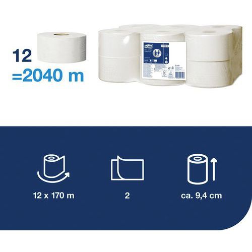 Papel higiénico Mini e Maxi Jumbo Tork Advanced, N.º de dobras: 2, Comprimento Rolo: 1700 cm, Cores: Branco Papel higiénico Mini e Maxi Jumbo Tork Advanced, N.º de dobras: 2, Comprimento Rolo: 1700 cm, Cores: Branco