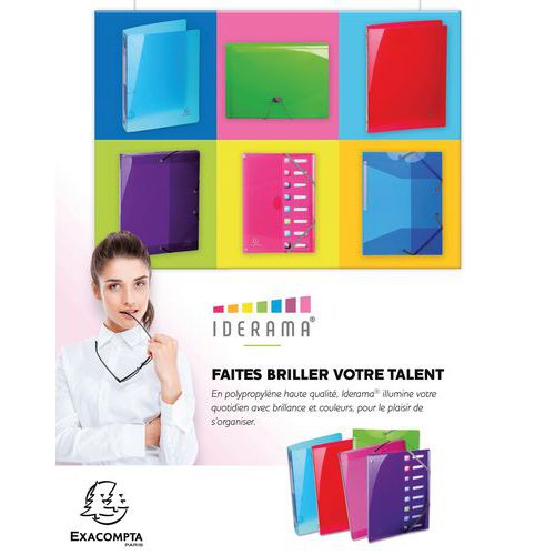 Pasta com 3 abas-elásticos Iderama – A4 sortido, conjunto de 10 – Exacompta