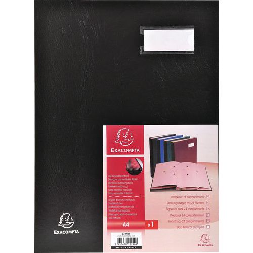| Nome do artigo | Pasta de assinaturas com lombada em fole, N.º de divisões: 24, Cores: Preto, Material: Cartão |