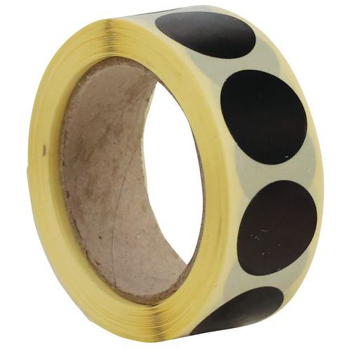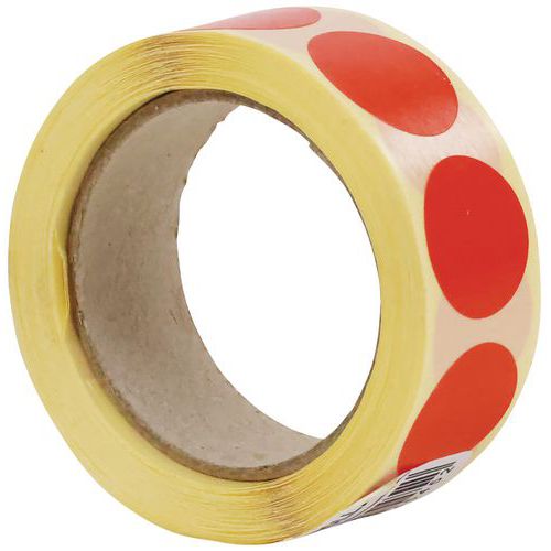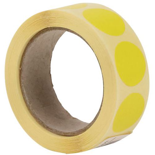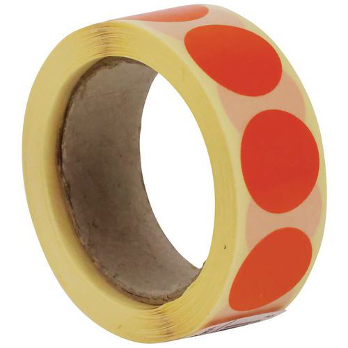 Círculos adesivos amovíveis em rolo de 500 círculos autocolantes. Permite sinalizar, classificar e localizar objetos em poucos segundos. Compatíveis com impressão de transferência térmica.