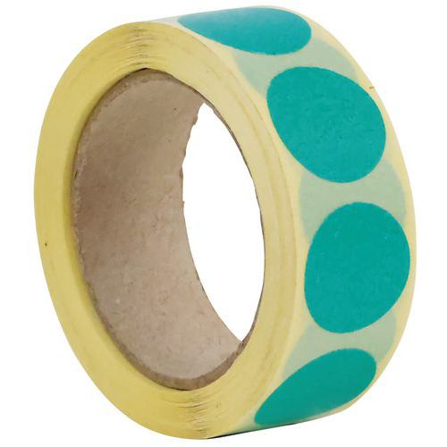 Círculos adesivos amovíveis em rolo de 500 círculos autocolantes. Permite sinalizar, classificar e localizar objetos em poucos segundos. Compatíveis com impressão de transferência térmica. Fabricado no UK