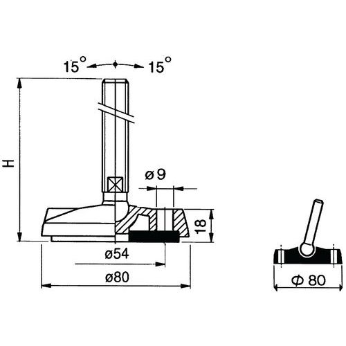 | Nome do artigo | Pé regulável poliamida, Haste Material: Inox, Haste comp.: 149 mm, Altura Pé: 185 mm, Haste roscada Ø: M20 |