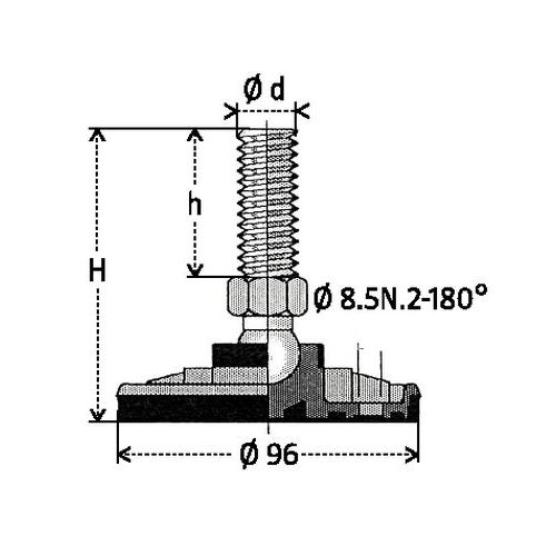 Pé regulável polipropileno - Estanque - Ø 102 mm - 1950 Kg - Aço zincado