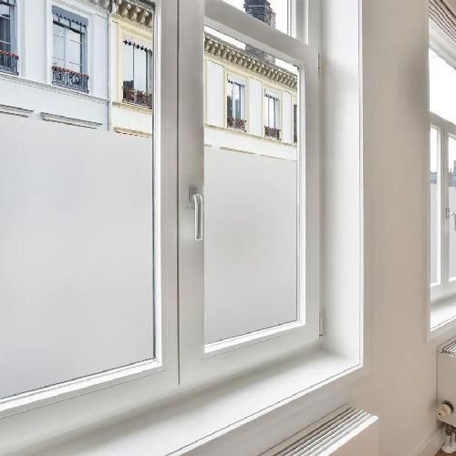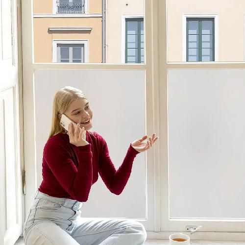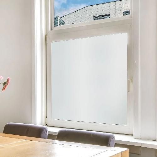 Total privacidade: excelente nível de privacidade. Luminosidade preservada: excelente passagem de luz. Acabamento elegante: branco, intemporal e discreto. Instalação simplificada: aplicação com água com sabão. Durabilidade excecional: resistência garantida de 12 a 15 anos.