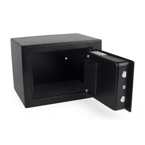 | Nome do artigo | Pequeno cofre-forte preto – Pavo, Altura total: 17 cm, Largura total: 23 cm, Tipo de fecho: Com código |