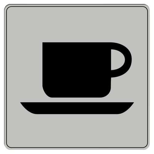 | Nome do artigo | Pictograma em poliestireno ISO 7001 – Café/bufete, Material: Plexiglass, Altura: 9 cm, Painel forma: Quadrado |