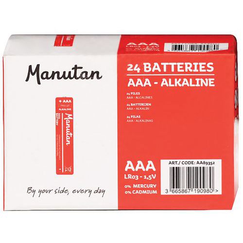 | Nome do artigo | Pilha alcalina AAA/LR03 – conjunto de 24, Tipo de pilha: AAA/LR03, N.º de pilhas: 24, Tensão: 1.5 V |