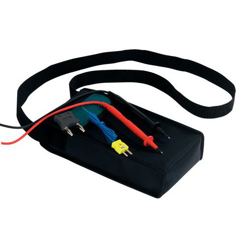 Fornecido com jogo de cabos de medição com pontos de contacto, um termopar, uma mala de transporte e um manual de utilização.