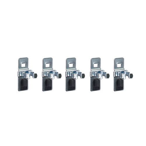 Aperte as suas ferramentas com total simplicidade. Modelo resistente com 6 mm de espessura. Fixe o suporte rapidamente com os grampos de segurança em plástico.