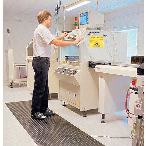 | Nome do artigo | Placa antifadiga antiestática, Largura: 75 cm, Comp.: 150 cm, Utilização tapete: Moderado, Cores: Preto |