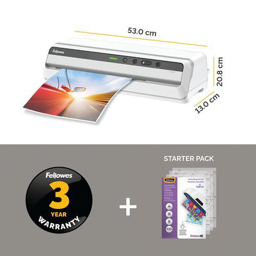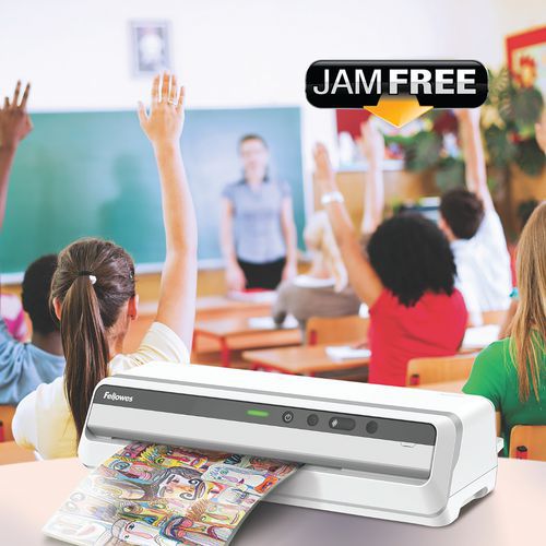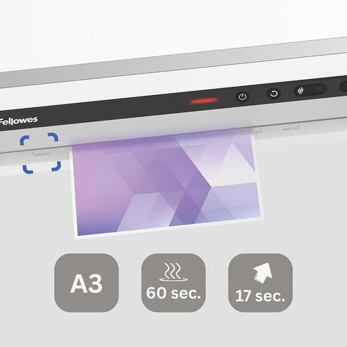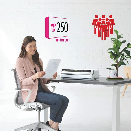 Importante: tecnologia ClearPath para uma plastificação sem encravamentos (garantida com as bolsas para plastificação Fellowes). Compatível todas as bolsas até A3 e 250 mícrones (2 x 250).