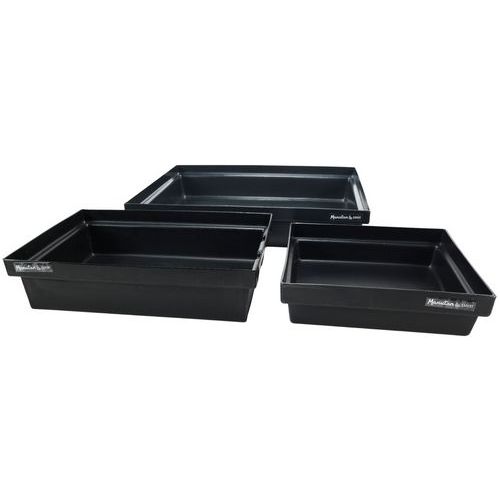 Plataformas de retenção 100% recicladas. Capacidade de 10 a 100 litros. Com fundo plano.