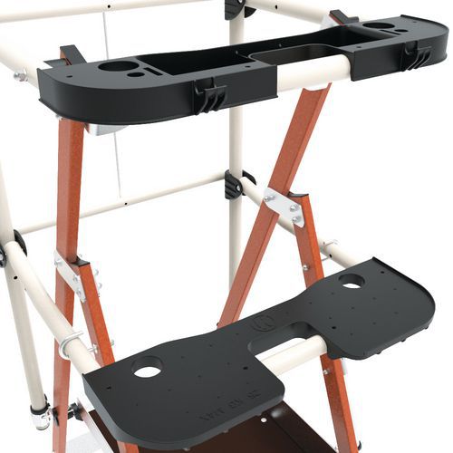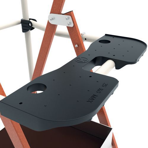 - Porta-ferramentas amovível com compartimentos e com resistência de 25 kg, com ganchos integrados (10 kg).