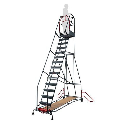 Escadote ergonómico para estantes – 5 a 15 degraus – Fimm, Alt. de acesso: 5.16 m, Plataforma altura: 3.46 m