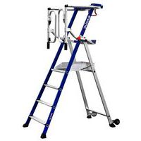 Plataforma individual móvel em alumínio extremamente segura com altura fixa. Desdobragem instantânea. Acesso através de degraus antiderrapantes. Colocação da balaustrada de segurança com apenas um gesto. Portão com 2 batentes com fecho de segurança automático.   2 prateleiras de série com compartimentos. Piso mais espaçoso equipado com uma pega para facilitar a abertura e a dobragem. Dimensões dobradas otimizadas. Fácil de arrumar e de transportar.