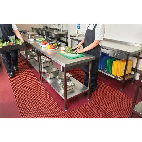 Plataforma gradeada flexível para ambiente alimentar, resistente a gorduras animais. Segurança garantida nas zonas de transformação de matérias animais. A grelha gradeada extra larga permite a passagem de resíduos. Plataforma gradeada com aditivos antifúngicos e antibacterianos. Fácil de manusear e de limpar para uma higiene perfeita.