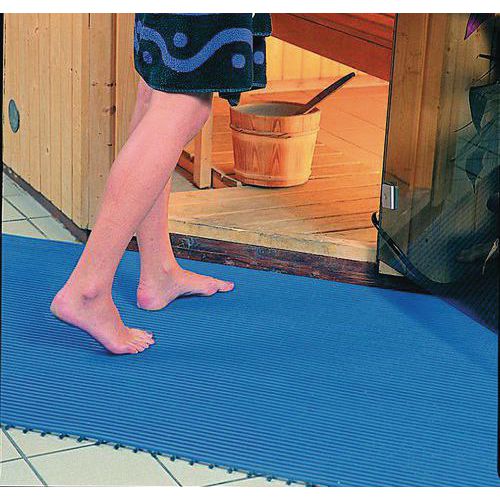 Metro linear de plataforma gradeada antiderrapante para espaços coletivos. Higiénica com material não poroso e aditivos antimicrobianos e antifúngicos. Conceção inovadora para uma drenagem ultraeficaz da água. Plataforma gradeada fácil de cortar, instalar e levantar. Relevo antiderrapante para uma estabilidade excelente.