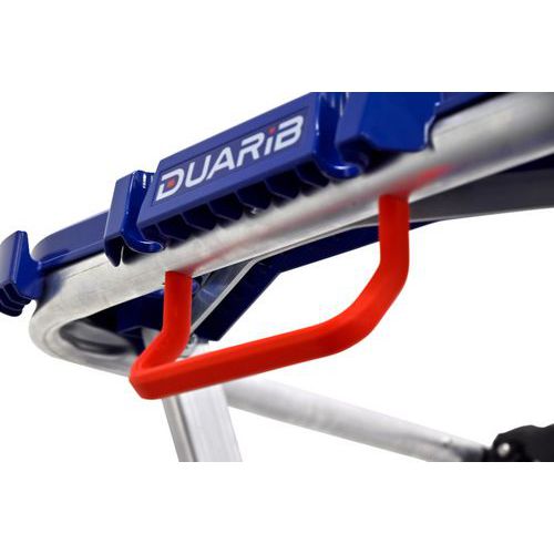 Prateleira superior de elevada capacidade com forma curva, para trabalhar mais perto da parede. 2 ganchos porta-baldes e pega de transporte integrada.