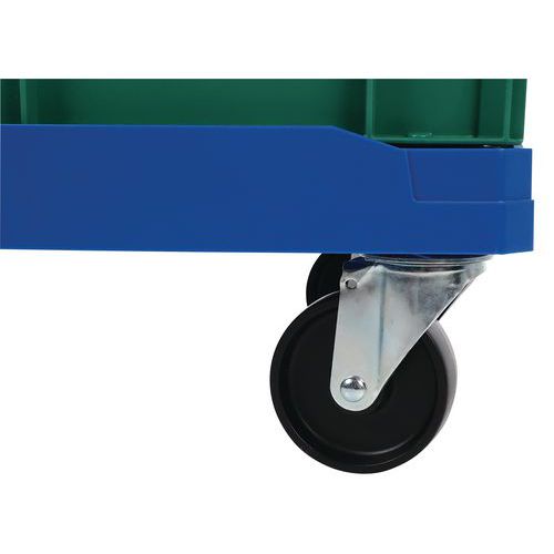 | Nome do artigo | Plataforma móvel de 150 kg + caixa de norma europeia de 39 L – Manutan Expert, Capacidade: 150 kg |