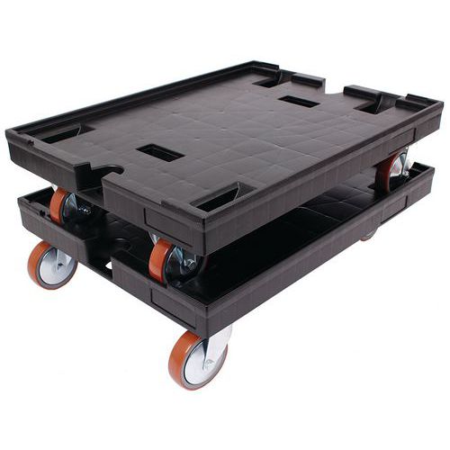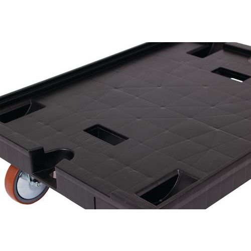 Com entalhes de empilhamento na parte superior da plataforma para empilhar os suportes móveis.