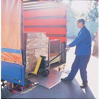 Para carregar e descarregar veículos com porta-paletes manuais, contentores móveis, carros de mão, etc.