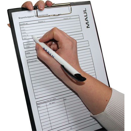 | Nome do artigo | Porta-blocos com revestimento em película de PVC A4 vertical – Maul, Cores: Preto |