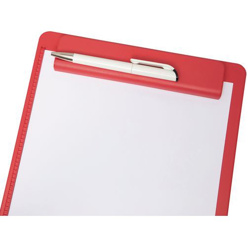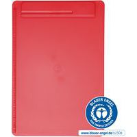 Porta-blocos A4 go Recyclage 90% de plástico PS reciclado, vertical: fabricado com mais de 85% de plástico reciclado (material pós-consumo). Confortável: rebordo no lado esquerdo, suporte para canetas integrado na pinça. Resistente: pinça grande de plástico, com molas metálicas fortes. Abertura da pinça de cerca de 0,8 cm.