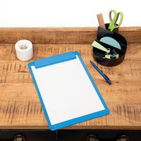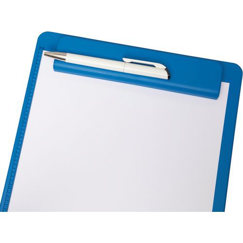 Porta-blocos A4 go Recyclage 90% de plástico PS reciclado, vertical: fabricado com mais de 85% de plástico reciclado (material pós-consumo). Confortável: rebordo no lado esquerdo, suporte para canetas integrado na pinça. Resistente: pinça grande de plástico, com molas metálicas fortes. Abertura da pinça de cerca de 0,8 cm.