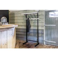 | Nome do artigo | Porta-cabides – Comprimento 120 m – 40 e 80 peças de roupa , Altura: 175 cm, Largura: 120 cm, Cores: Preto |