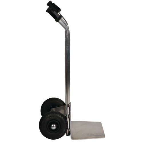 | Nome do artigo | Porta-cargas em alumínio, Capacidade: 200 kg, Roda piso: Pneumático, Diâmetro Roda: 260 mm, Tipo de aba: Fixa |