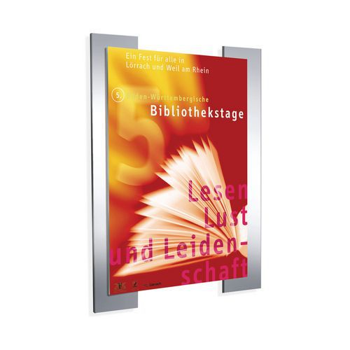 Este porta-cartaz é constituído por dois painéis em alumínio. O compartimento dos cartazes pode abrir-se facilmente, permitindo, assim, uma mudança rápida e fácil do conteúdo.
