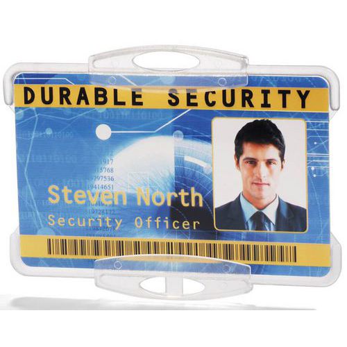 Caixa rígida com faces descobertas para acesso mais rápido ao crachá.