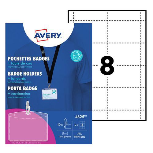 | Nome do artigo | Porta-cartões com fita para o pescoço – Avery, Cores: Preto, Orientação: Horizontal |