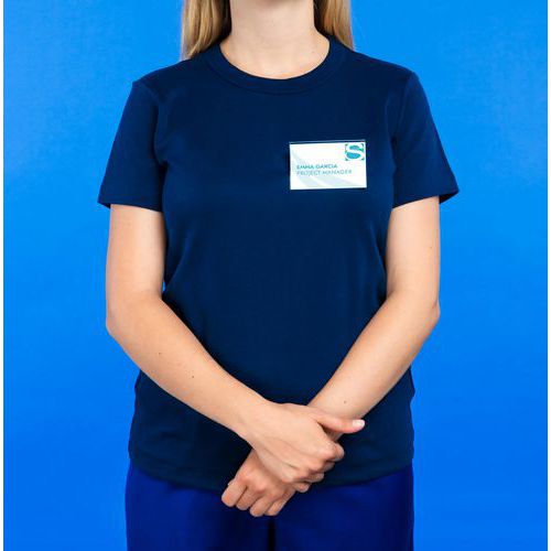 Podem ser usados de 2 formas: com alfinete ou com mola, para se adaptarem a todos os tipos de vestuário e permanecerem sempre legíveis na horizontal.