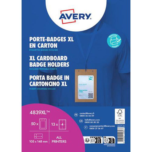 | Nome do artigo | Porta-cartões em cartão, formato A6, com inserções para impressão – Avery, Material: Cartão |