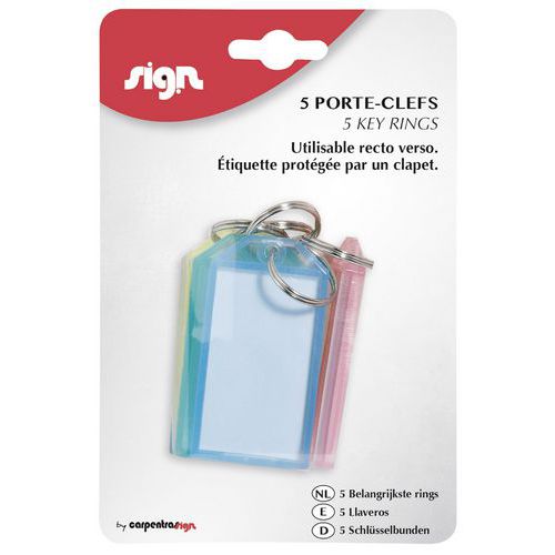 | Nome do artigo | Porta-chaves com portinhola – 5 cores – conjunto de 5 – Sign, Material: PVC, Altura total: 28 mm |