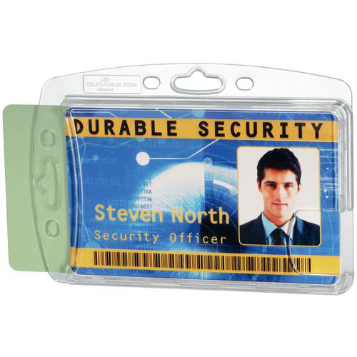 Caixa rígida para uma proteção ideal dos cartões magnéticos. Entalhe no verso para facilitar a remoção ou inserção do crachá. O porta-crachá pode ser combinado com um enrolador, um laço, um clipe ou uma corrente. Pode ser utilizado na vertical ou na horizontal graças à perfuração dupla. Fabricado na Alemanha