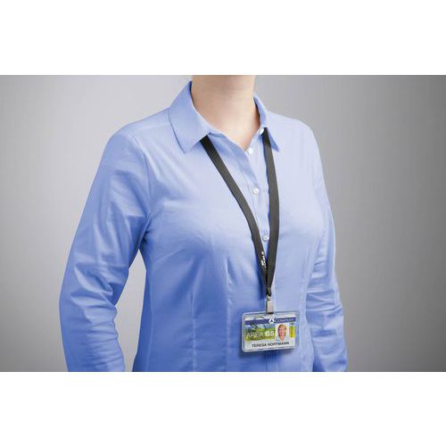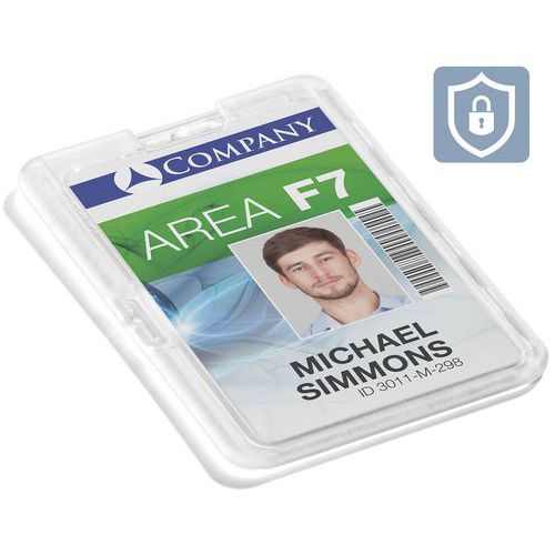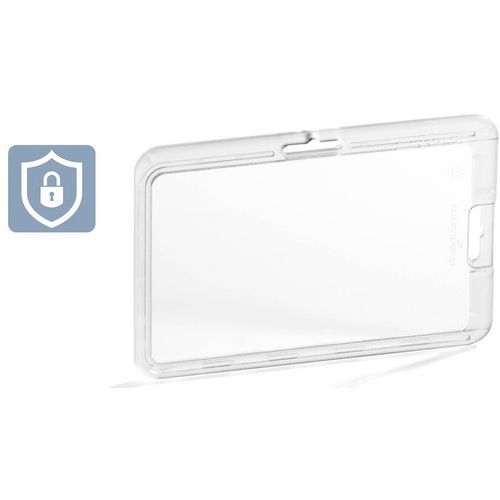 | Nome do artigo | Porta-crachás permanente para 1 cartão de segurança, Altura: 54 mm, Largura: 87 mm, Material: Policarbonato |