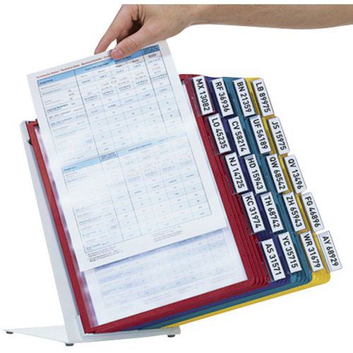| Nome do artigo | Porta documentos de mesa Vario – 20 bolsas sortidas A4, Suporte material: Aço, Largura: 34 cm, Altura: 40 cm |