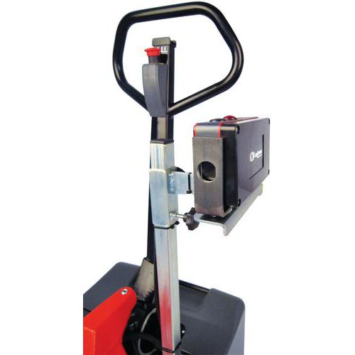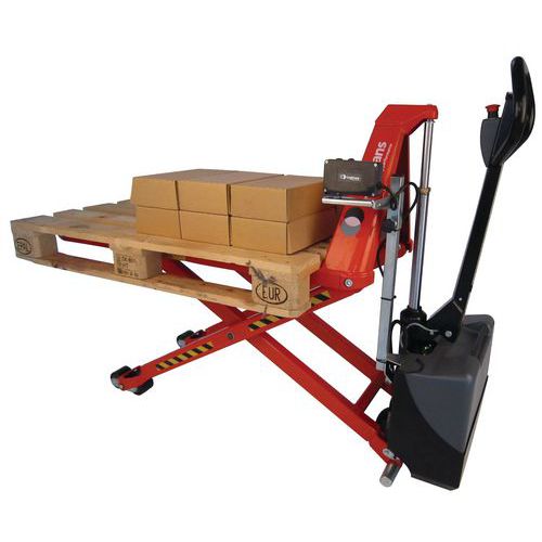 - Porta-paletes elétrico e ergonómico com sistema de nivelamento automático extremamente fácil de regular.