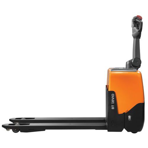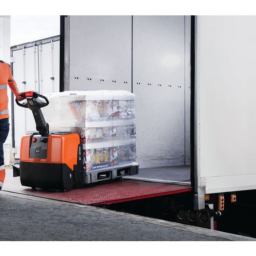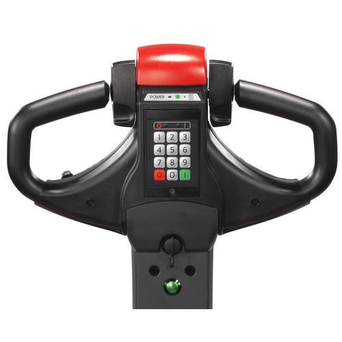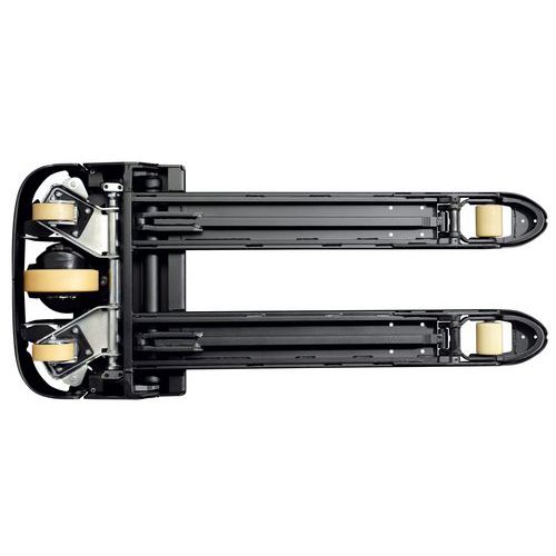 - Manuseamento excelente: manobras rápidas e seguras, meia volta fácil num camião com a carga. Comando simples e intuitivo do braço de manobra. A possibilidade de utilização com uma mão permite a otimização da produtividade. Porta-paletes elétrico e ergonómico que inclui um sistema de Click-2-Creep que permite melhorar o respetivo manuseamento em espaços apertados.