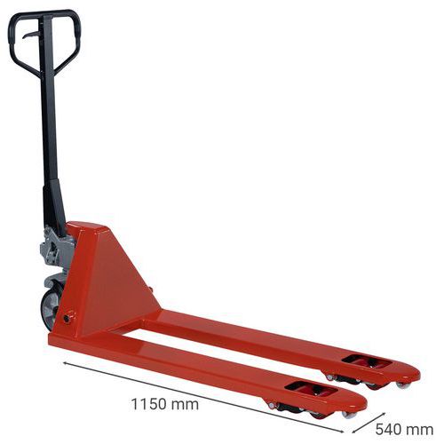 | Nome do artigo | Porta-paletes manual – 1150 mm de comprimento – 2500 kg, Capacidade: 2500 kg, Comp. garfo: 1150 mm |