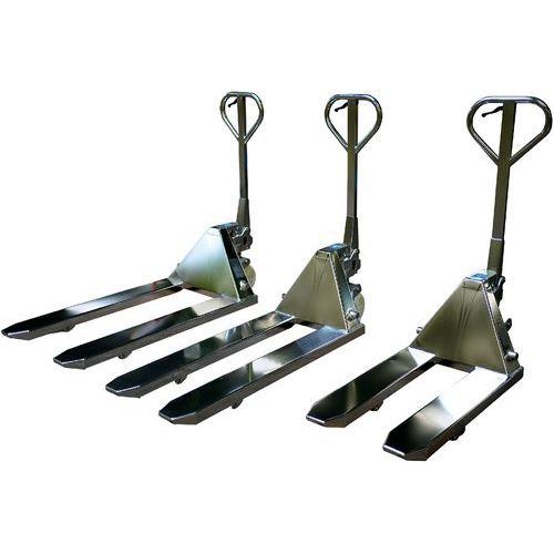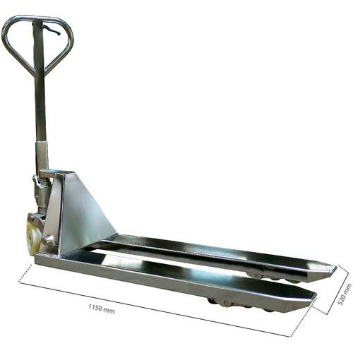 | Nome do artigo | Porta-paletes manual 2,5 t premium inox 304 garfos 1150x520 mm – Stockman, Capacidade: 2500 kg |