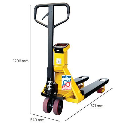 | Nome do artigo | Porta-paletes manual com balança, impressora e certificação COFRAC – capacidade de 2000 kg/500 g – B3C |