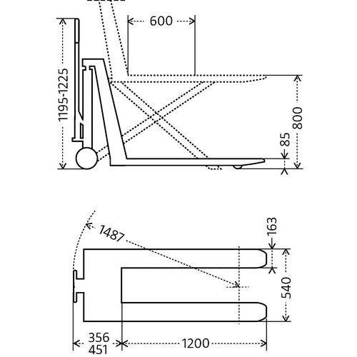 | Nome do artigo | Porta-paletes manual de grande elevação – capacidade de 1500 kg – Logitrans |