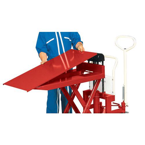 - Permite colocar as mercadorias ao mesmo nível, com a ajuda, por exemplo, da plataforma de elevação de uma carrinha ou de um transportador.