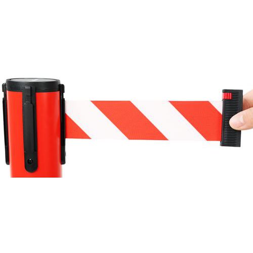 Poste com base em PVC com correia de 2 m – Manutan Expert Poste com correia tracejada estirável capaz de proporcionar uma delimitação eficaz em poucos segundos. Este produto foi concebido para uma utilização profissional.