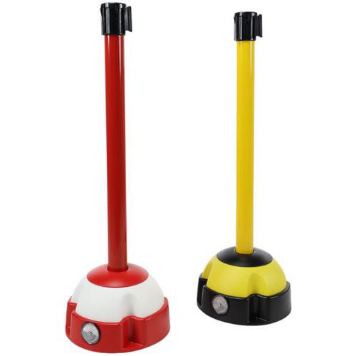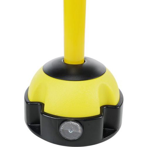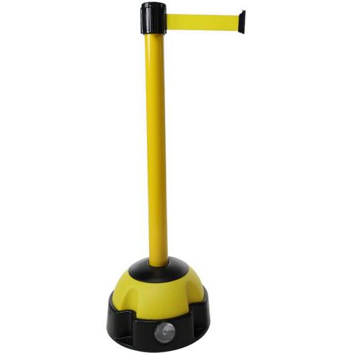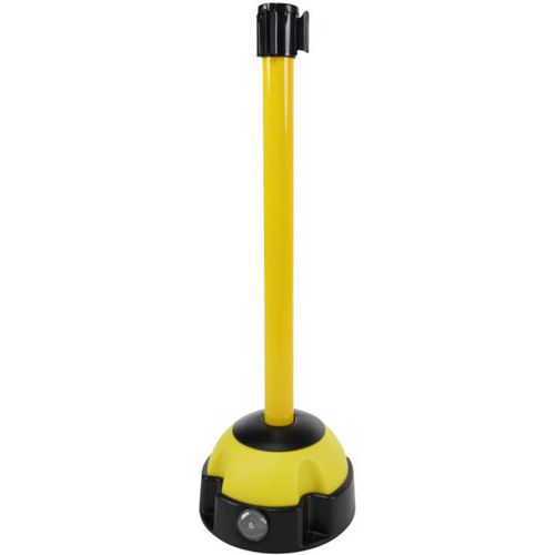 Poste com correia e base estabilizada com areia ou gravilha. Sinalização multidirecional graças à cabeça com correia. Dispõe de 1 saída de correia e 3 entradas possíveis. Estabilidade máxima: lastro até 13 kg. Base muito resistente com 4 pontos de fixação.