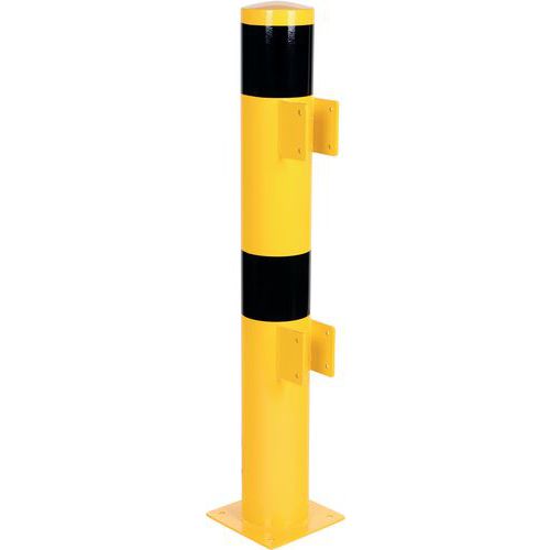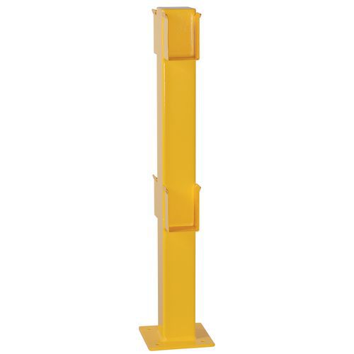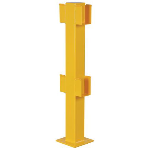 Poste em aço para barreira de segurança, totalmente adaptável às suas instalações. Cor amarela para boa visibilidade. Estabilidade garantida graças à sua fixação ao solo por placa. Produto fabricado em aço galvanizado para utilização em espaços interiores. # da certificação TÜV. Instalação fácil.