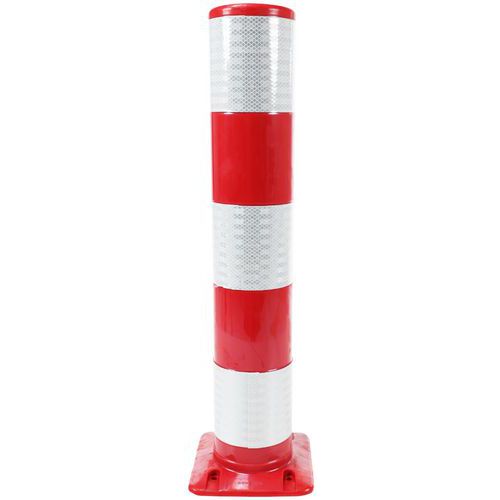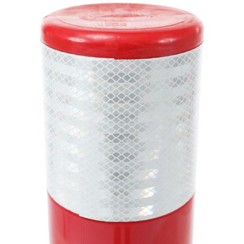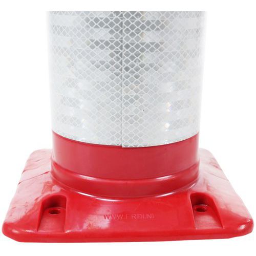 Poste em material sintético flexível revestido de película retrorrefletora (classe II) que regressa à posição original depois de uma colisão. Solução ideal para zonas sensíveis de colisões, como entradas e saídas, parques de estacionamento, saídas de emergência, locais industriais, etc. Disponível com ou sem suporte de informação em material sintético de Ø 4 cm. Altura: 9 cm. Diâmetro: 16 cm • Dim. da base: 25x25 cm.